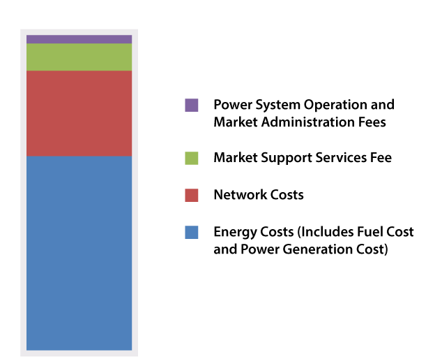 The non-fuel component of the SP electricity tariff reflects the costs required to generate and deliver electricity to offices and homes in Singapore, and consists of: