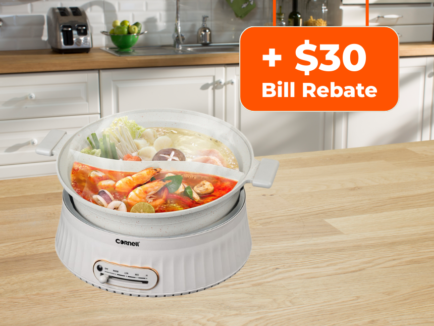 Set up GIRO recurring payments to get the Cornell CMCS40WH Yuan Yang Multi-cooker 4L worth $168 + $30 bill rebate