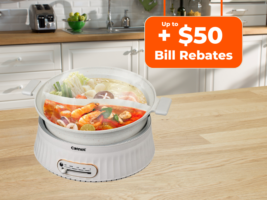 Bring home the Cornell CMCS40WH Yuan Yang Multi-Cooker (4L) worth $168 and $30 bill rebate when you renew with any 24-month plan. For new-to-Senoko customers - stack on a referral code to get additional $20 bill rebate. Simply apply the following promo code at checkout and set up recurring payments with GIRO to qualify.