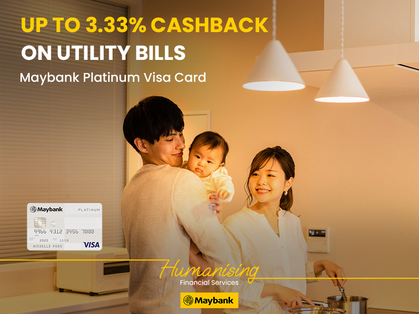 Be rewarded with 3.33% cashback, up to S$200 quarterly, on your utility bills with Maybank Platinum Visa Card!